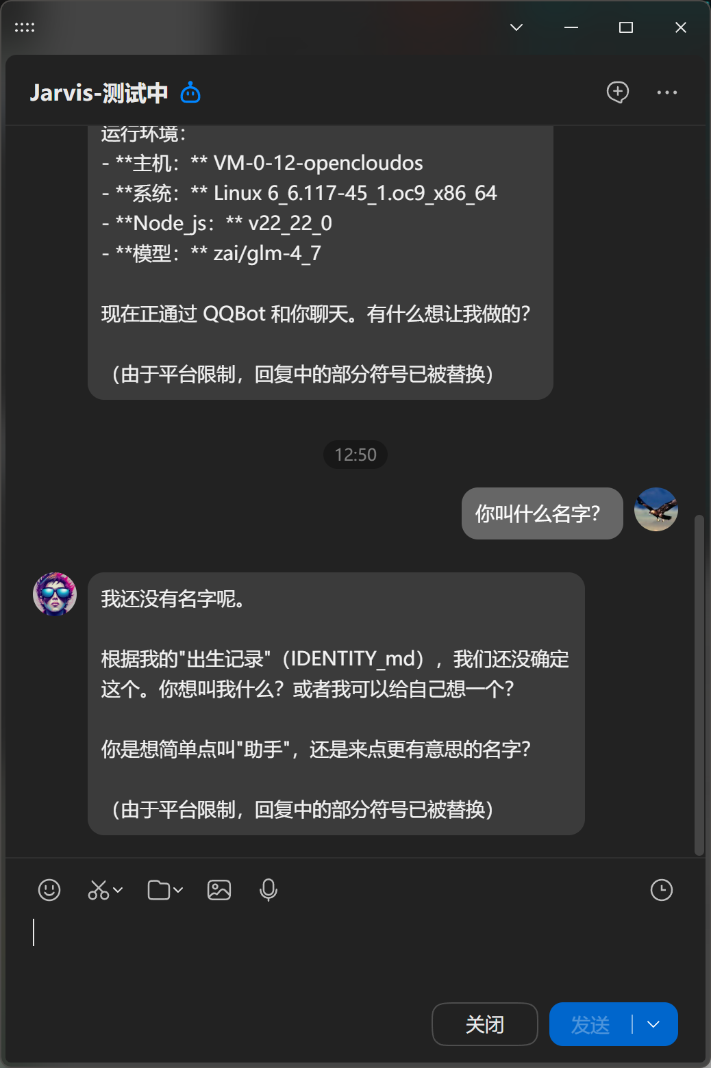 你直接可以在 TUI 里面对话,也可以用 QQ 进行对话,TUI 里面会同步显示。