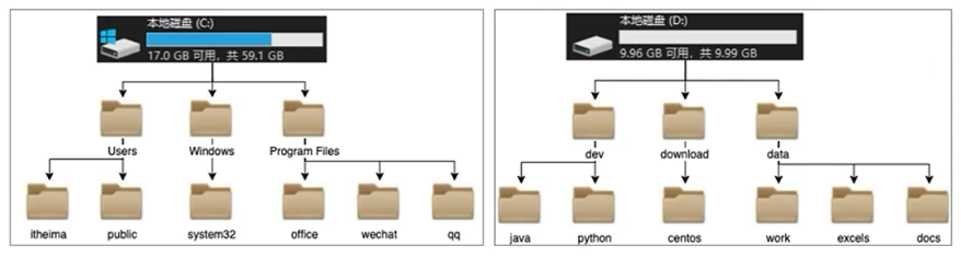 Windows系统可以拥有多个盘符,如C盘、D盘、E盘