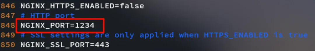 - "3000:80" # 宿主机端口号:容器端口号,将主机端口映射到之前设置的容器NGINX_PORT=80端口,注意缩进格式