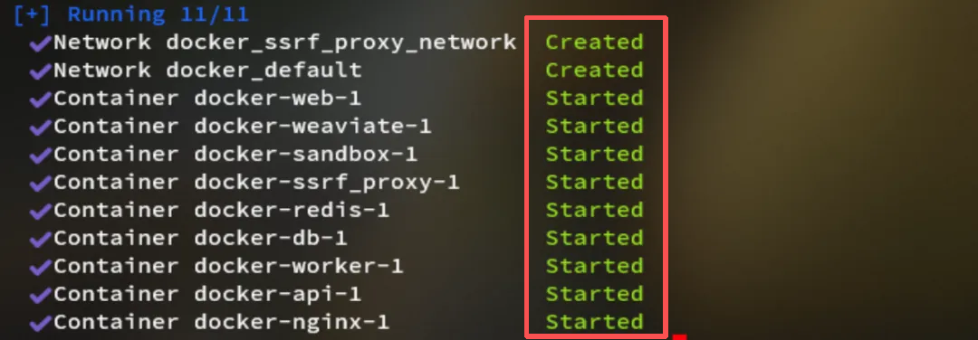 输出如下,则代表web端口已映射,可以在网页中打开Dify了: