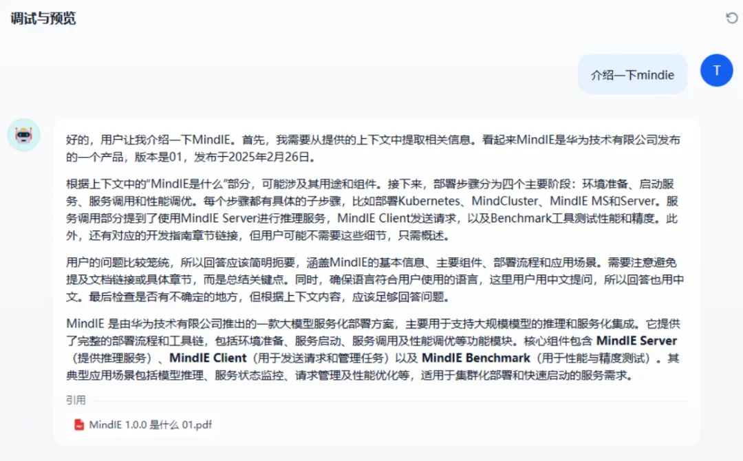 创建聊天助手,进行测试。