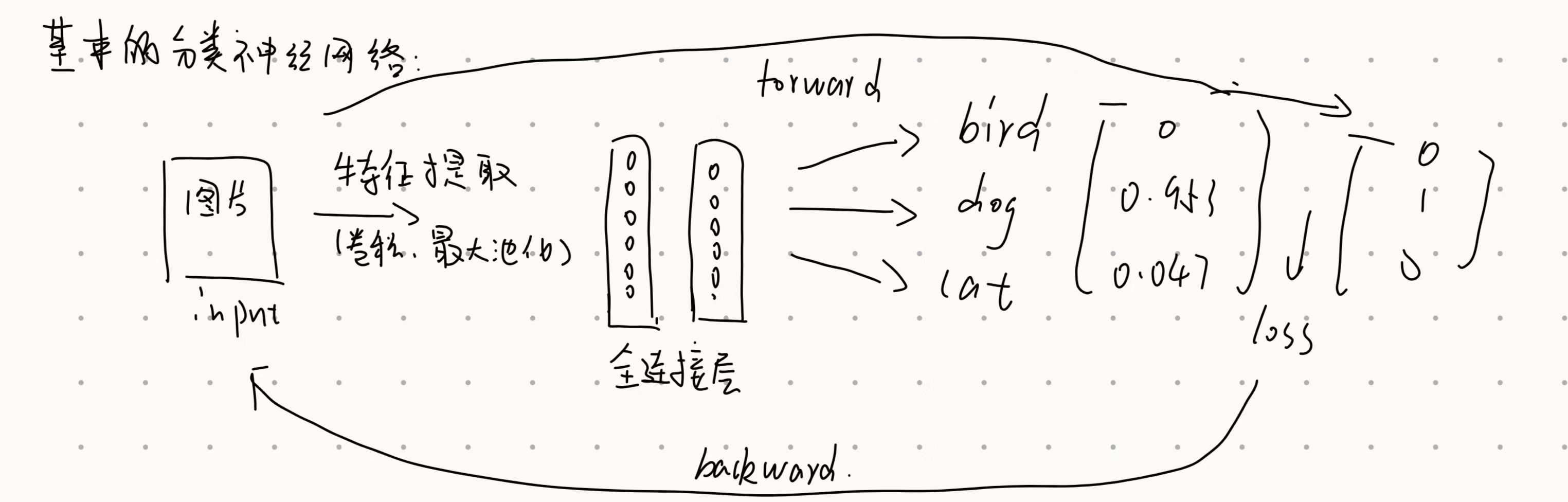 3.更新映射:首先将loss计算的误差从最后一层向前传递到每一个神经元(backward)再更新参数(优化器 例如SGD adam)