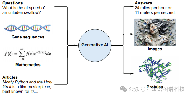 生成式AI可以处理多种输入和输出组合,如图所示:
