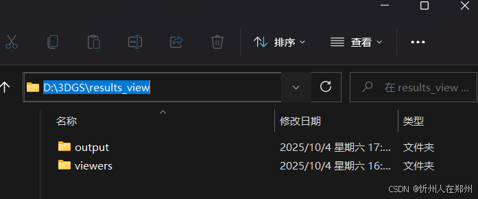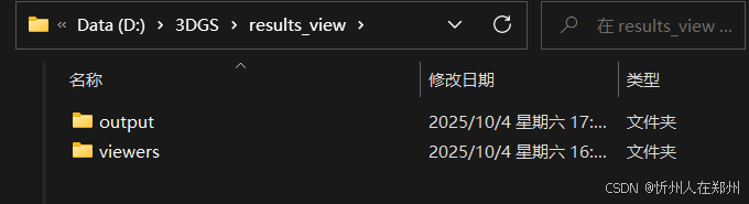 data/train/output路径的output文件夹传到本地电脑,我是放在了D:DGS esults_viewoutput这里,可以自由定义,然后将下载后的viewers解压到results_view下(注意这时候解压的时候可能是将viewers里面的文件都解压出来了,这时候需要在results_view下创建viewers文件夹,然后存放解压后的内容在viewers下,如果正常解压则不用管这步)最后,文件结构是下述这样即可(保证output文件夹和viewers文件夹在同一目录下)。