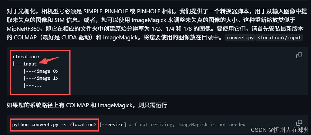 colmap -h检查是否安装成功(若输出版本信息等则说明成功,如3.8版本,使用mamba安装的一般都是3.8的colmap) - 以图片数据集为例,参考