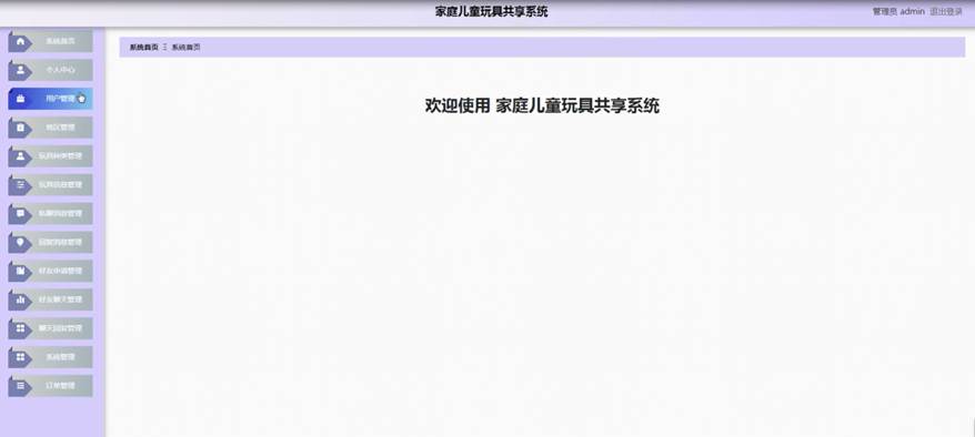 家庭儿童玩具共享系统综合网络空间开发设计要求。目的是将家庭儿童玩具共享系统将传统管理方式转换为在网上管理,完成家庭儿童玩具共享的方便快捷、安全性高、交易规范做了保障,目标明确。家庭儿童玩具共享系统可以将功能划分为管理员功能和用户功能。