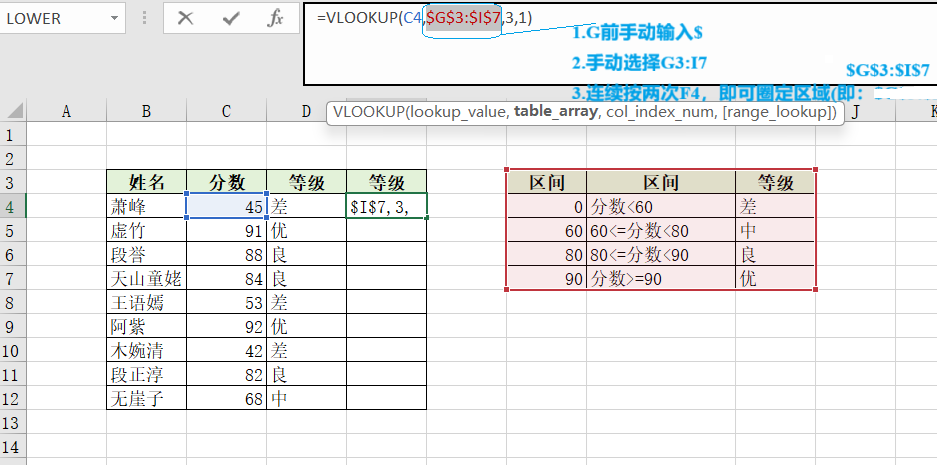 Excel-vlookup实现近似查找