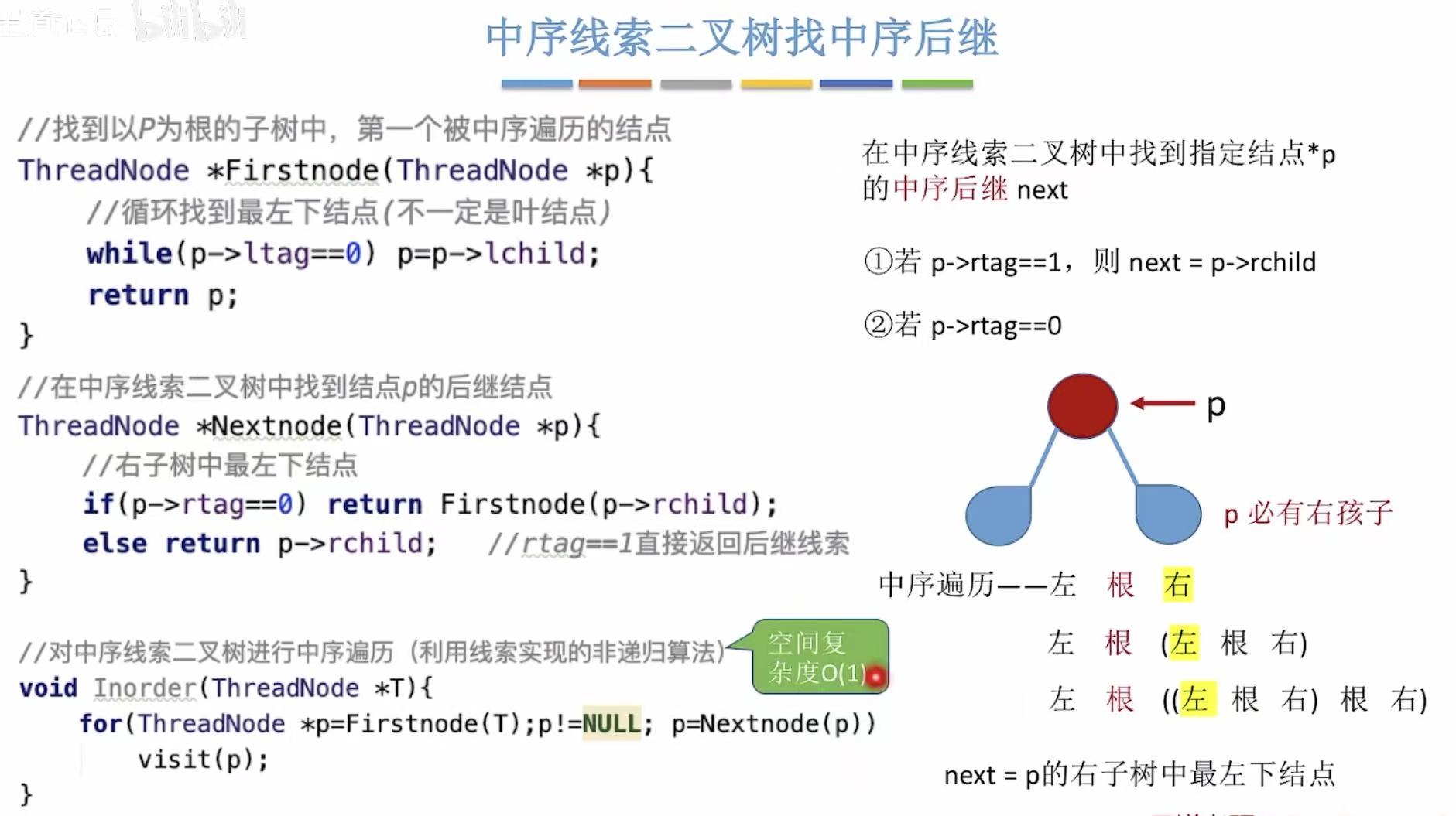 - 没有后继线索的,后继是当前结点的右子树中最左下结点