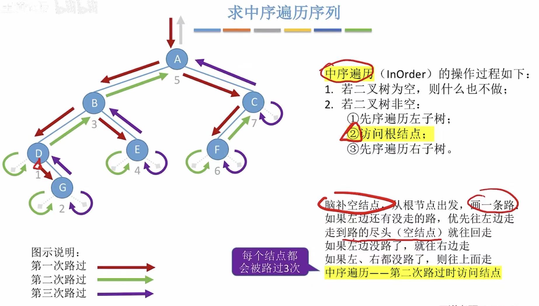 中序:就是第二次路过时访问的结点。
