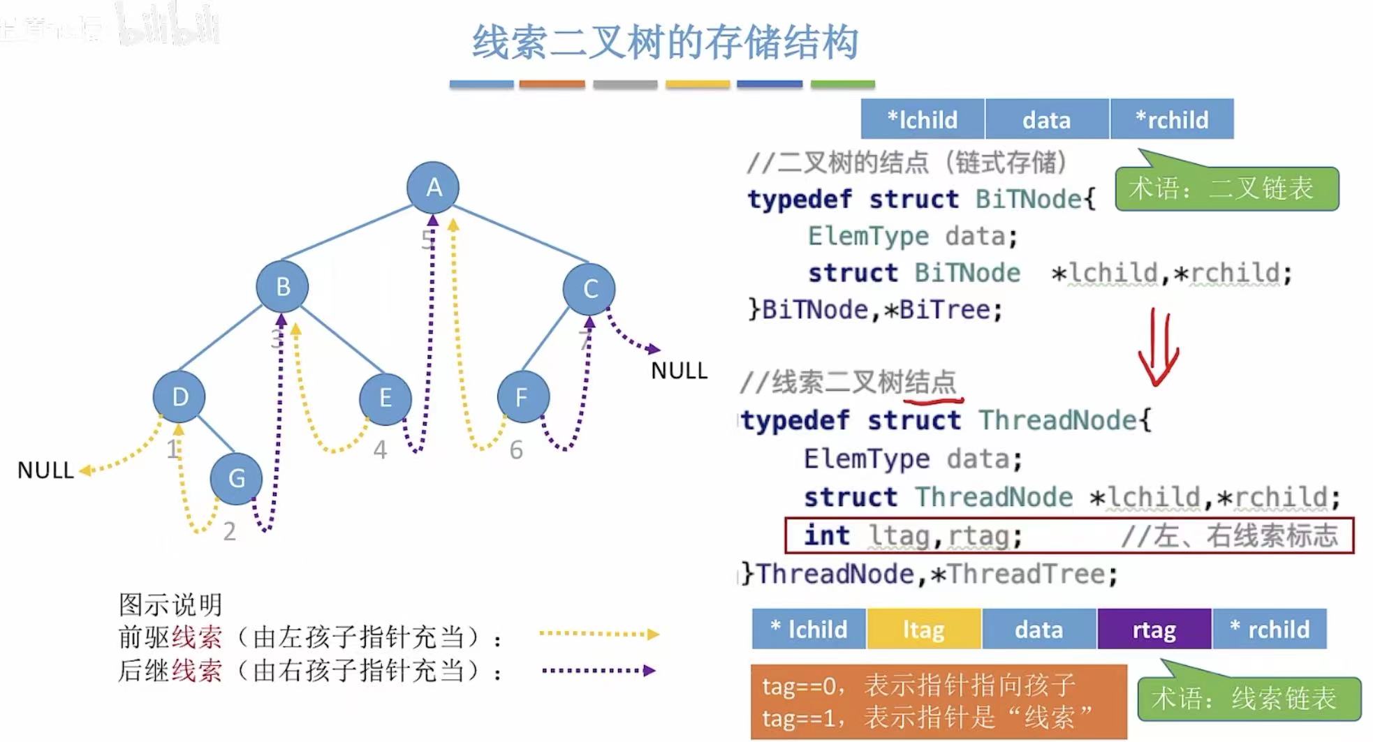2. 线索二叉树的存储结构