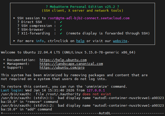 今天临时又出了新的问题,发现X11转发认证失败,大概就是按下图所示: