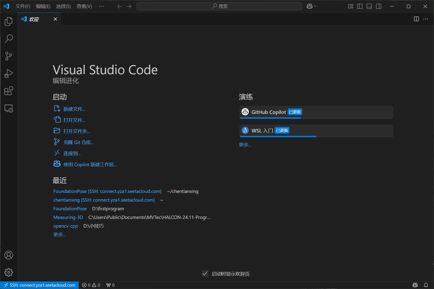 就可以进去了,这时候左下角就会显示ssh连接到了: