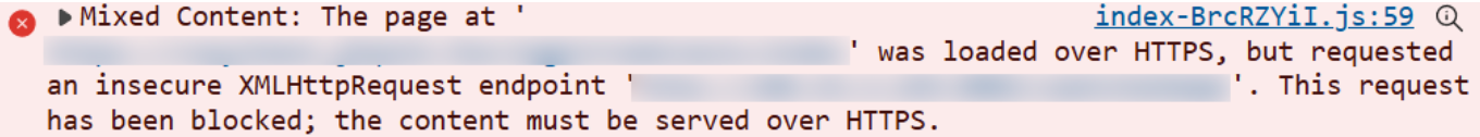 一般的同学用IP地址格式解析配置的话不会遇到这个问题,但如果你绑定了SSL证书和域名,而且http和https混用就会导致内容混合问题,浏览器控制台报错如下