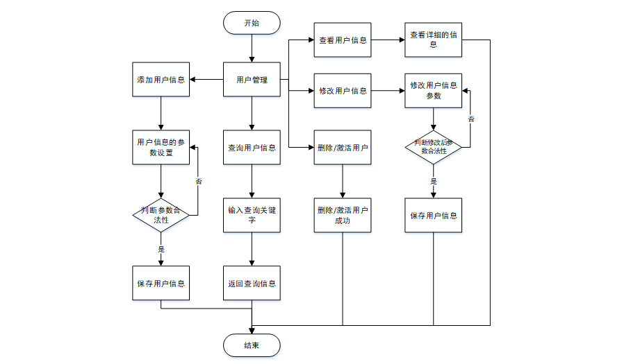 由于不同的系统实际使用用户角色的不同,他们的业务分析也会变得有所不一样,为了论述方便接下来都将以管理员用户功能权限下的系统业务流程来分析,如下图所展示: