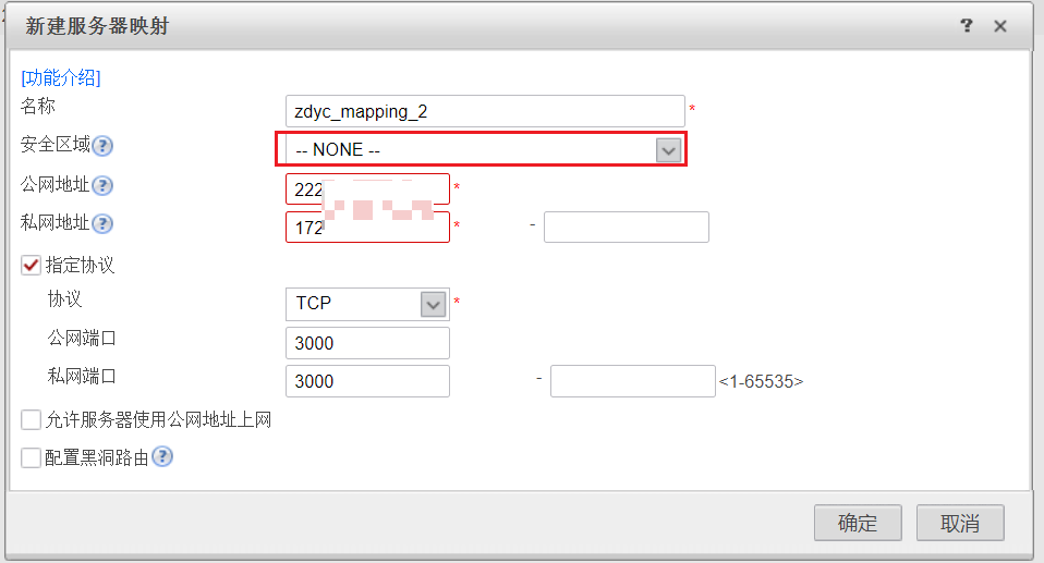 安全区域:选择none或者any,如果不做回流,可以选择untrust。如果做回流,必须选择any或none