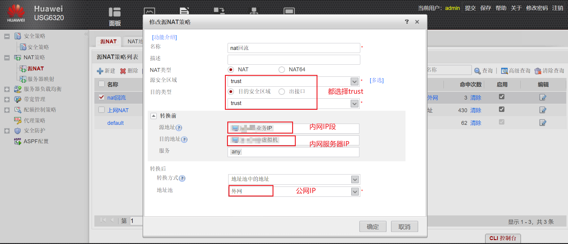 华为USG 6320之配置外网访问服务器NAT映射和NAT回流