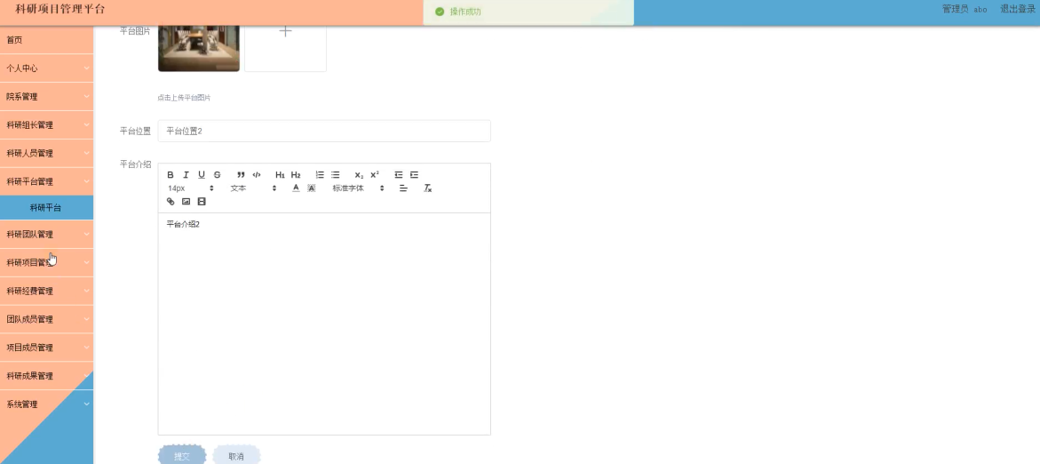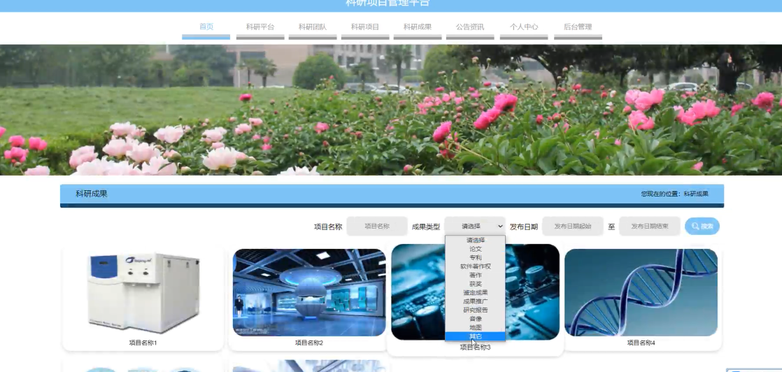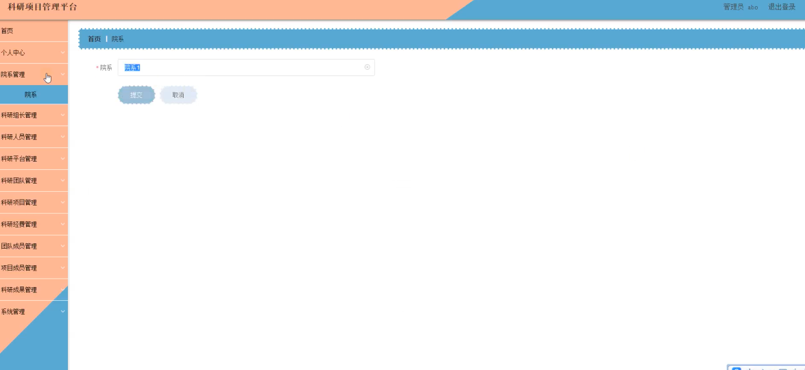 项目功能:科研组长,科研人员,科研平台,院系,科研团队,科研项目,科研经费,团队成员,项目成员,科研成果