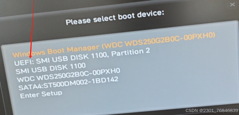 3.1接下来我们直接把U盘插入忘记密码的电脑,电脑重启或开机,加载过程中按 ESC、F11、F12、F4等快捷键使用U盘启动会进入这样一个页面(具体是哪个键,需要看你电脑牌子)