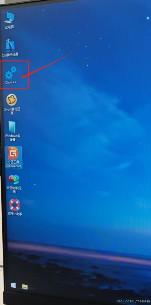 3.2我们点击键盘的↓键选择第二个,因为我们的U盘就叫EFI刚好对呀这里的UEFI(其实选择第三个也一样界面不同罢了),进入类似于正常桌面的页面,然后打开图标类似于小齿轮的DIsm++,(需要注意的是我们下载的版本是2.3,在2.1版本时,这个清空密码是单独列出来的。)