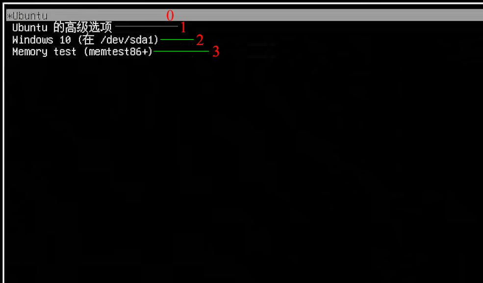 然后重启就会看到默认是如下选项