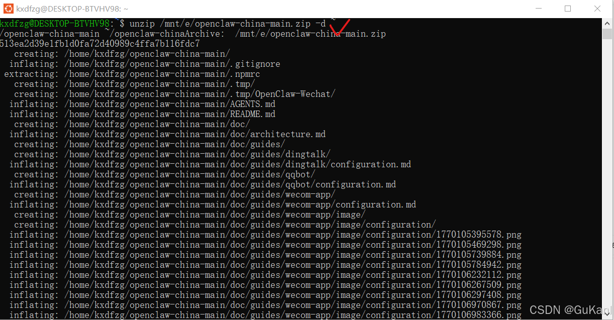 unzip /mnt/e/openclaw-china-main.zip -d ~