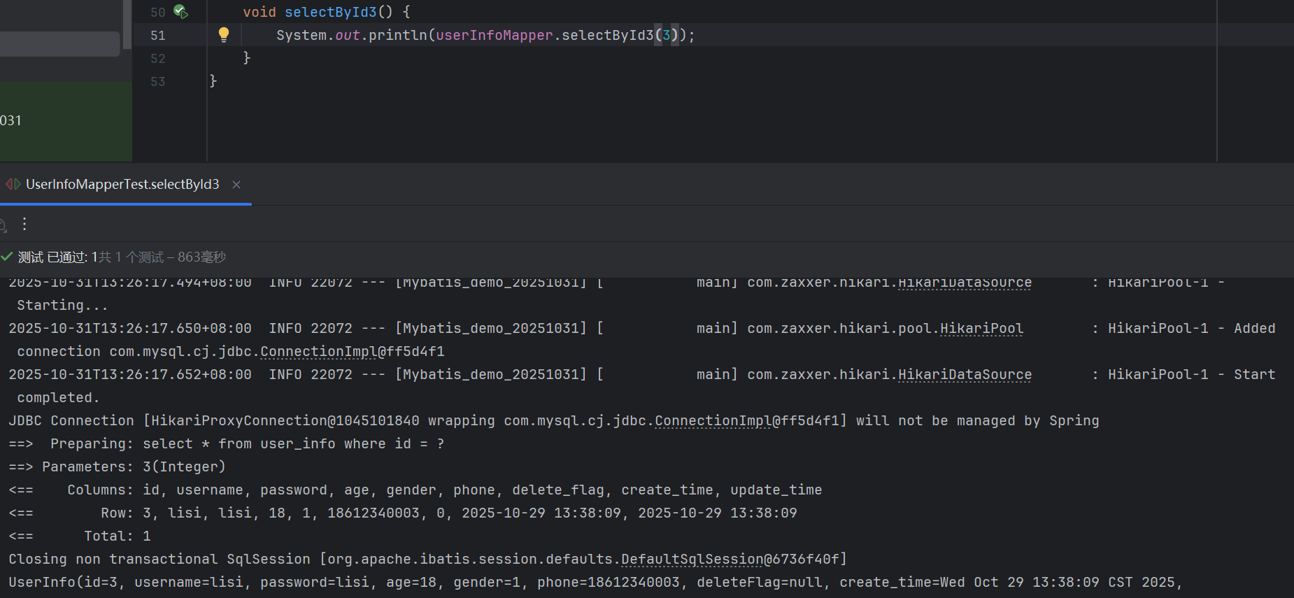 试一试,把 #{} 括号中的字符,改成 id1,再次运行结果: