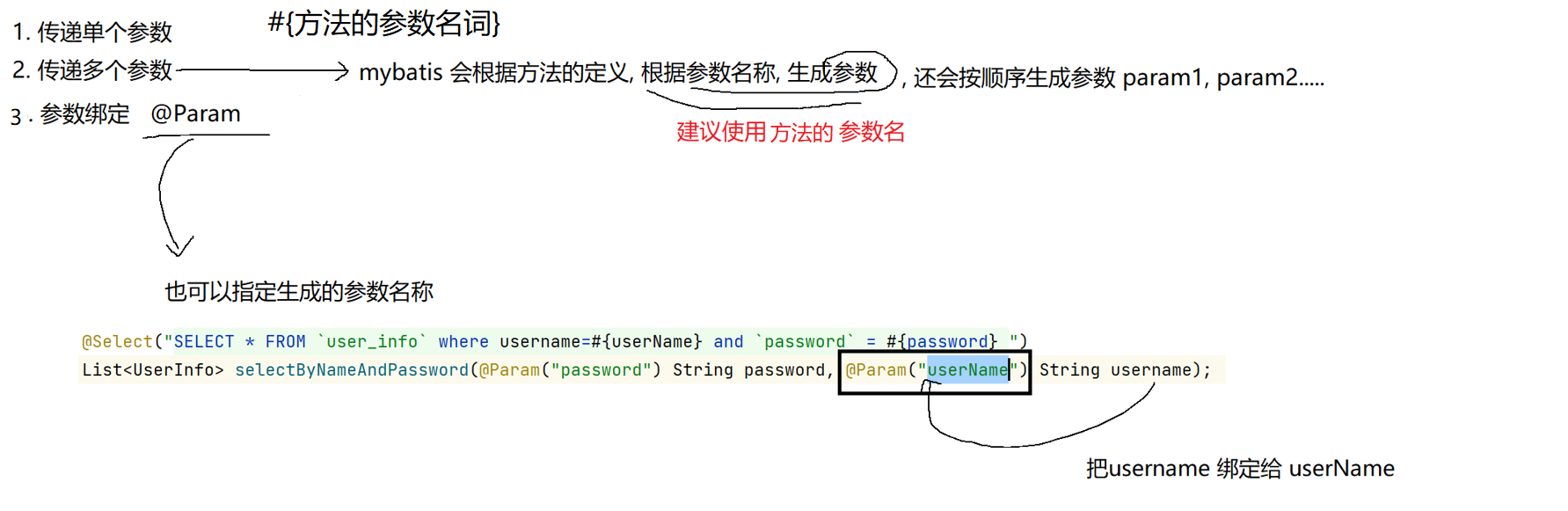 之前方法只有一个参数的时候,是可以的,因为没得选,只能用这个参数,填充到 sql语句中。