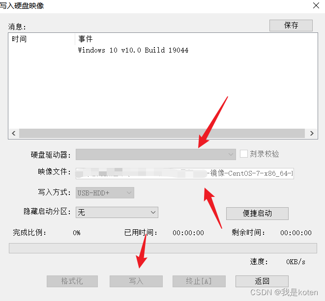 4、选择你的u盘,点击写入,等待进度条走完后消息显示刻录完成即可!