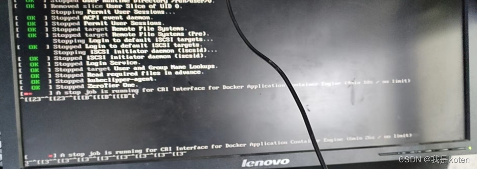 如果你用命令重启的时候夯住,好长时间都关不了机,跟下图一样,可以长按服务器的电源键关机,关机后过几秒种再按进行重启。