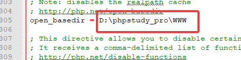 我们取消注释,然后限制基础目录在D:phpstudy_proWWW目录下面,注:改完配置文件后记得在phpstudy重启一下环境