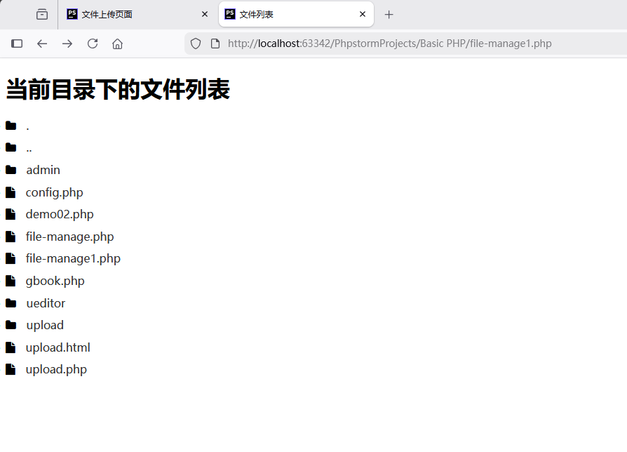 我们代码当前所处在D:PhpstormProjectsBasic PHP目录中,所以我们web页面就自然的显示当前目录下的所有文件