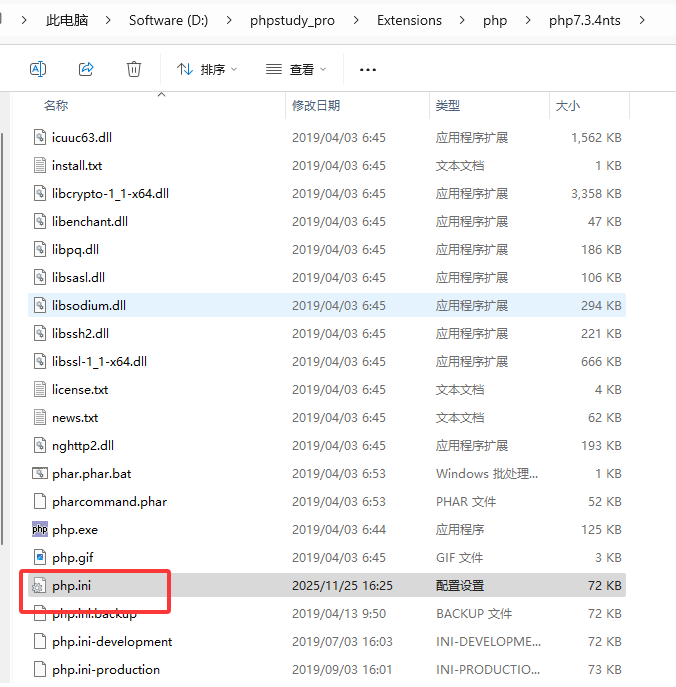 我们可以将代码放在phpstudy的环境下面,文件中有一个叫做php_ini的配置文件