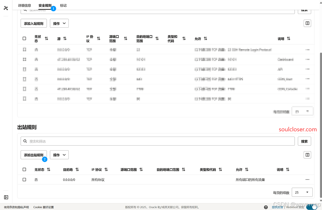 ⚠️ 检查安全规则的源/目标 CIDR (::/0 代表所有 IPv6 地址)、协议和端口设置。