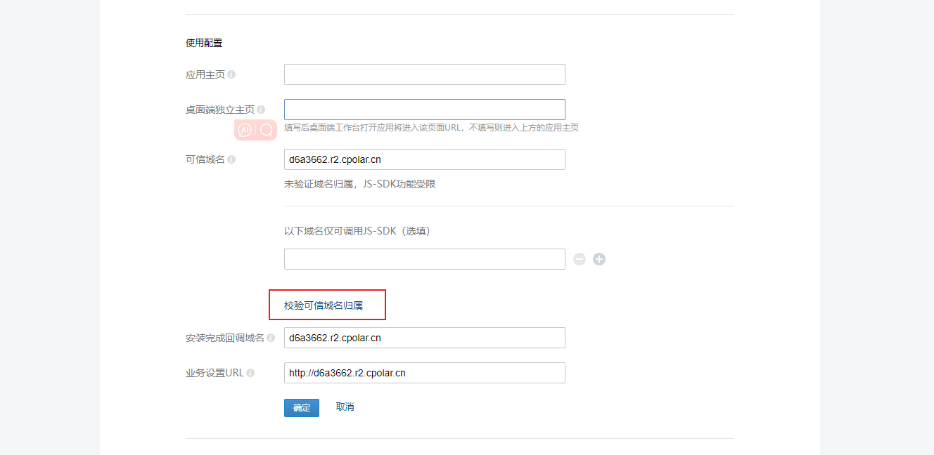 上面我们启动运行本地接口服务后,再次打开企业微信开发者中心,应用参数界面,开始可信域名校验,点击校验可信域名归属,