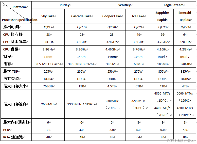 Purley平台:Sky Lake(第一代)、Cascade Lake(第二代)