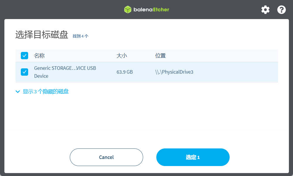 2、点击目标磁盘,选择你的U盘,我这里选的我的Tf卡