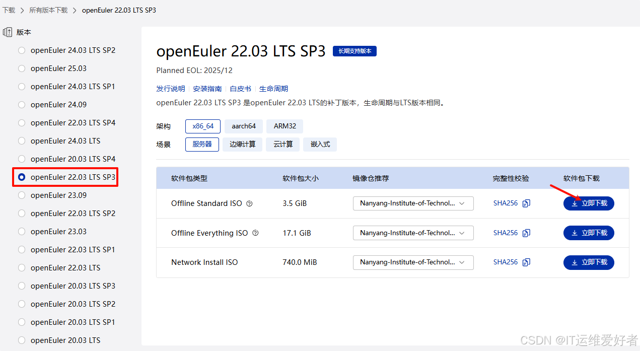 下载地址:https://www.openeuler.openatom.cn/zh/download/archive/