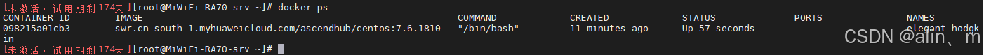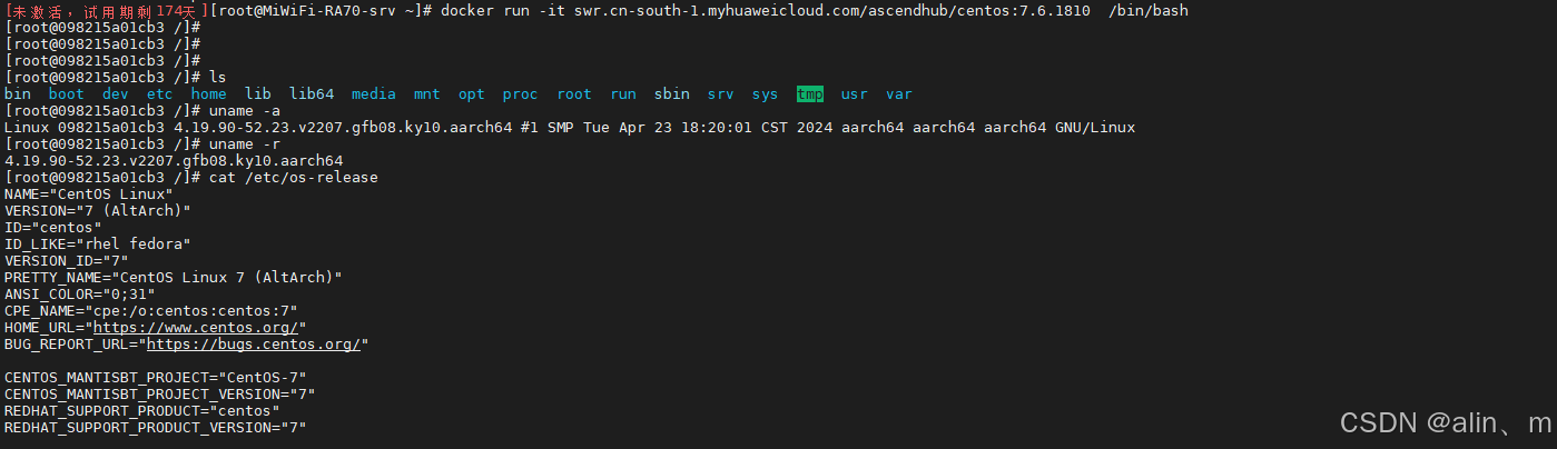 docker run -it swr.cn-south-1.myhuaweicloud.com/ascendhub/centos:7.6.1810 /bin/bash