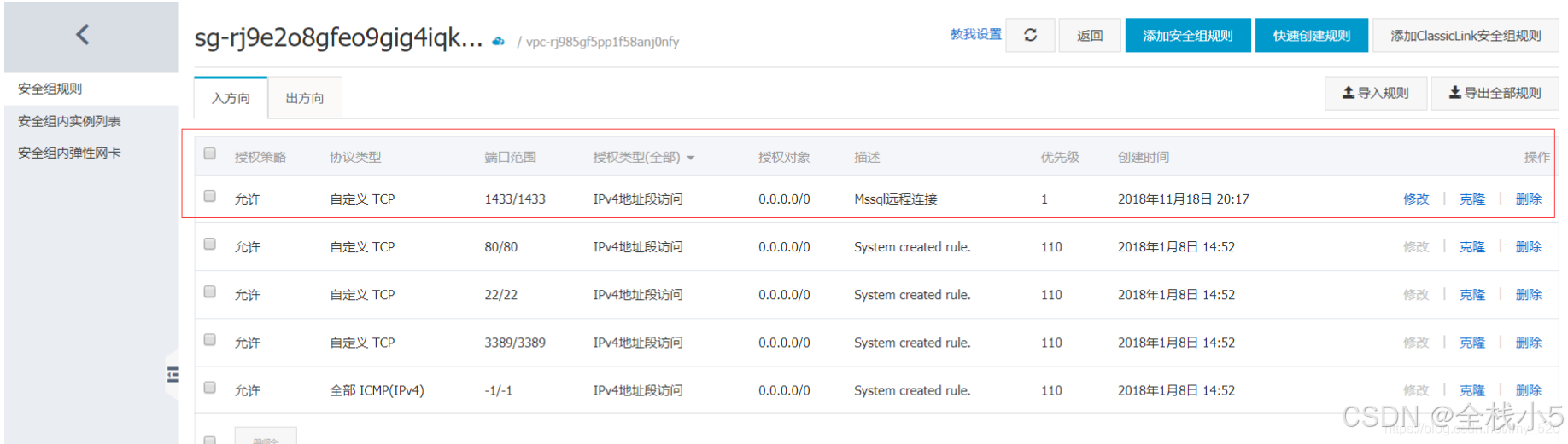 【Sql Server】sql server 2019设置远程访问,外网服务器需要设置好安全组入方向规则