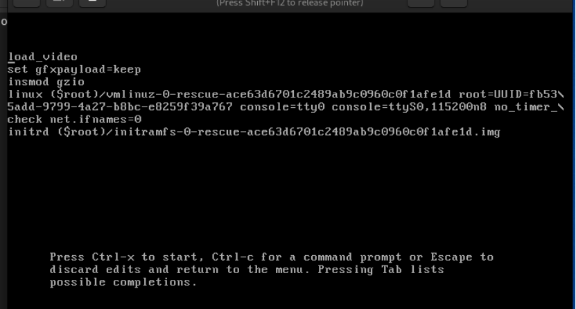(3)选择要启动的内核条目(带有rescue一词的条目)