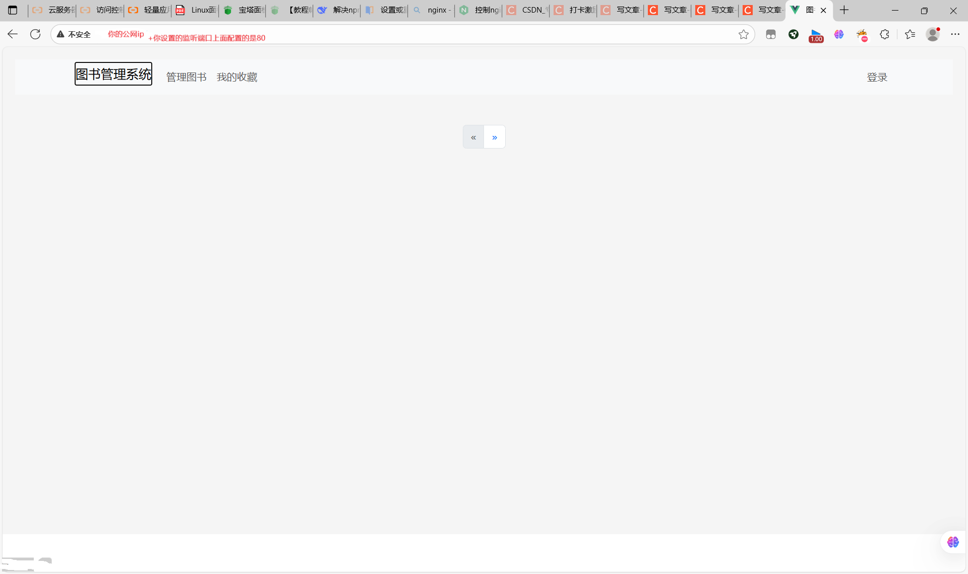 可以看到已经成功了,图片没显示出来,是因为cors的问题以及我的后端的数据库还没有在服务器上配置成功