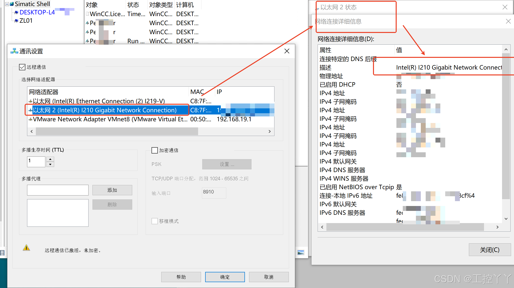 重要:打开此电脑中的SMATIC SHELL文件,点击设置,选对应的网线名称,客户端和服务器都需要设置