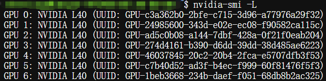 (1) 运行nvidia-smi -L,查看GPU的具体识别情况