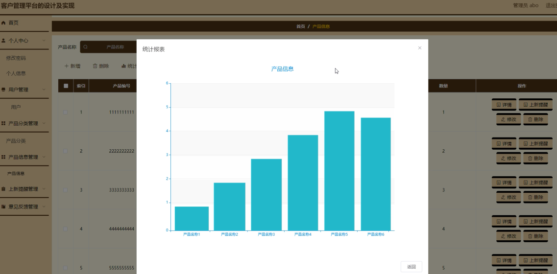- 数据分析模块:按客户类型、销售区域、时间维度生成动态报表,支持数据导出与可视化展示。采用ECharts图表库,实现销售业绩趋势图、客户分布热力图等交互式可视化。