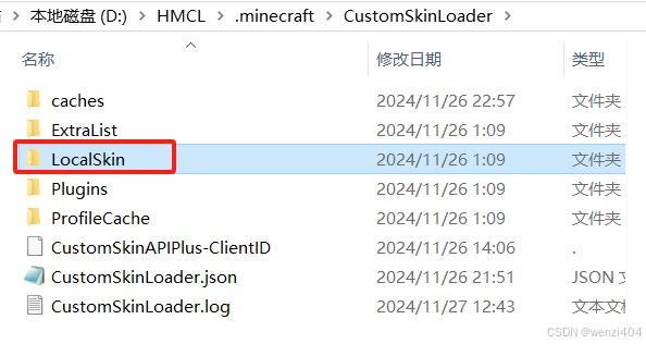 举例皮肤文件的存储路径为:D:HMCL.minecraftCustomSkinLoaderLocalSkinskins