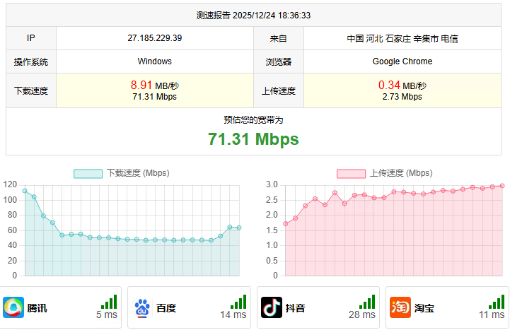 既然是免费的,那就姑且忍一下!我们先来看看分配的带宽是多大的。