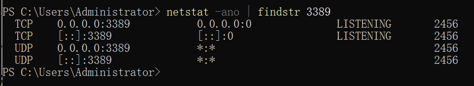 不过,重启之后,远程桌面服务也是真真实实的运行起来了!3389端口终于显示处于监听状态了!