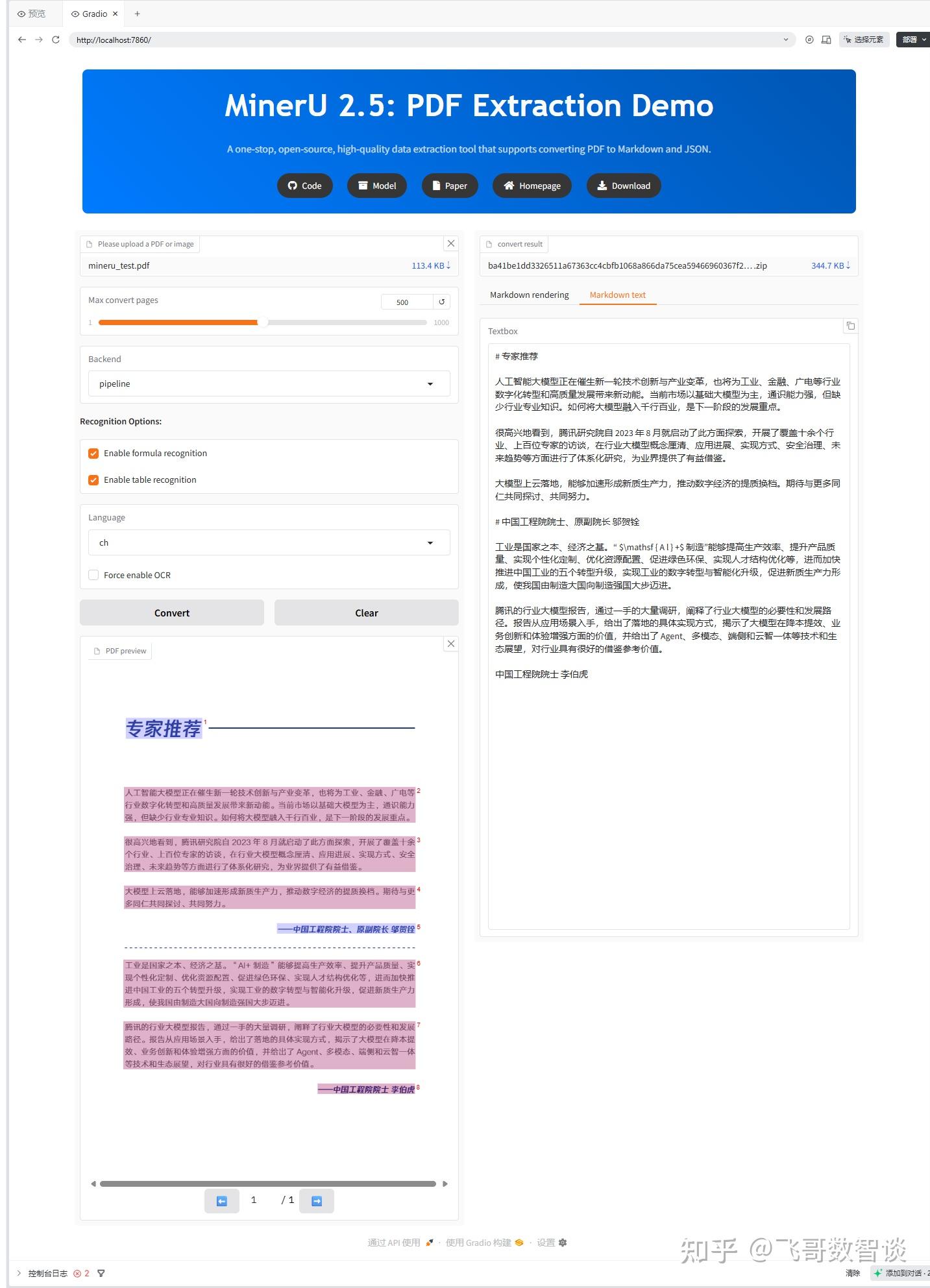 再次上传 PDF,可以看到提取结果了,已经完成了今天的既定目标了。