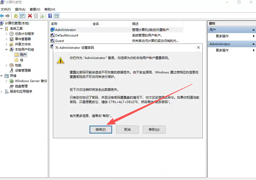 点击继续、输入两次新密码即可,无需重启立即生效