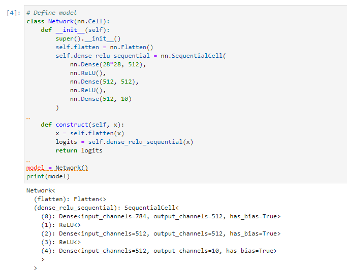 optimizer = nn.SGD(model.trainable_params(), learning_rate=1e-2) # Stochastic Gradient Descent